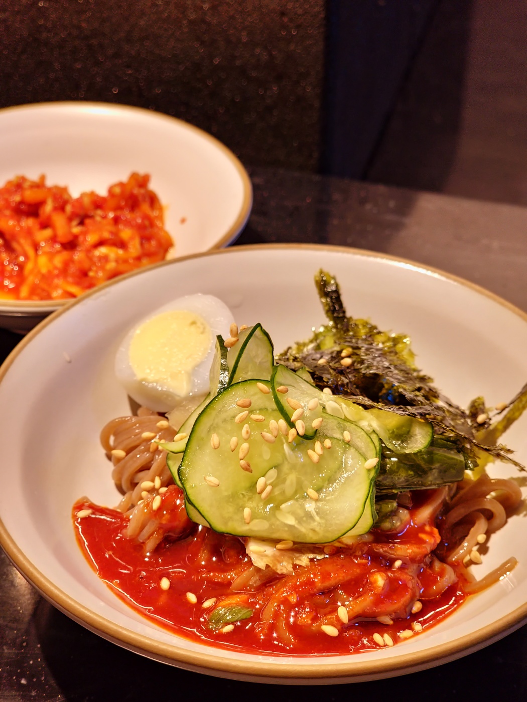 그리고 보리김치 메밀국수가 먼저 나왔는데
